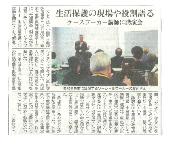 ・函館の生活保護利用率が全国と比べて高いことに驚き、地方都市の現実を知る機会になった。